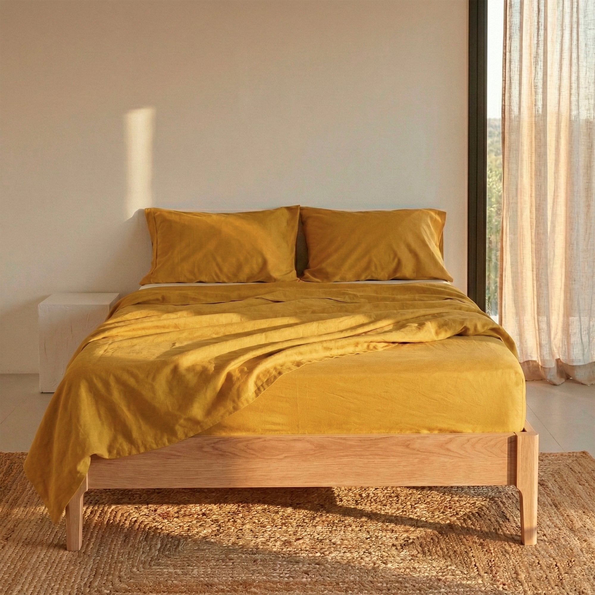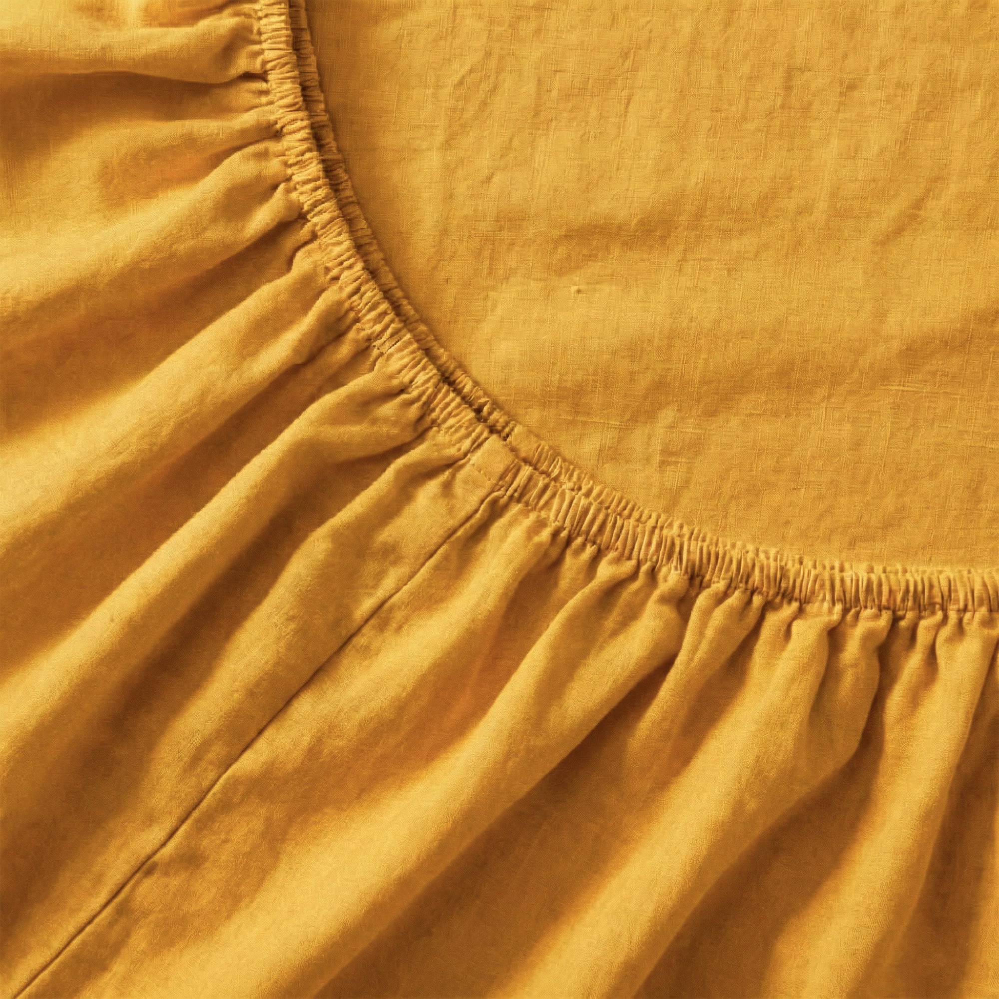 Wenn Sie Ihr Schlafzimmer farblich neu gestalten möchten, sollten Sie mit dem senfgelben Spannbettlaken beginnen. Sein kräftiger, erdiger Ton sorgt für eine sonnige und unverwechselbare Ästhetik, die sich leicht mit Produkten in der gleichen Farbe oder anderen neutralen Tönen kombinieren lässt.