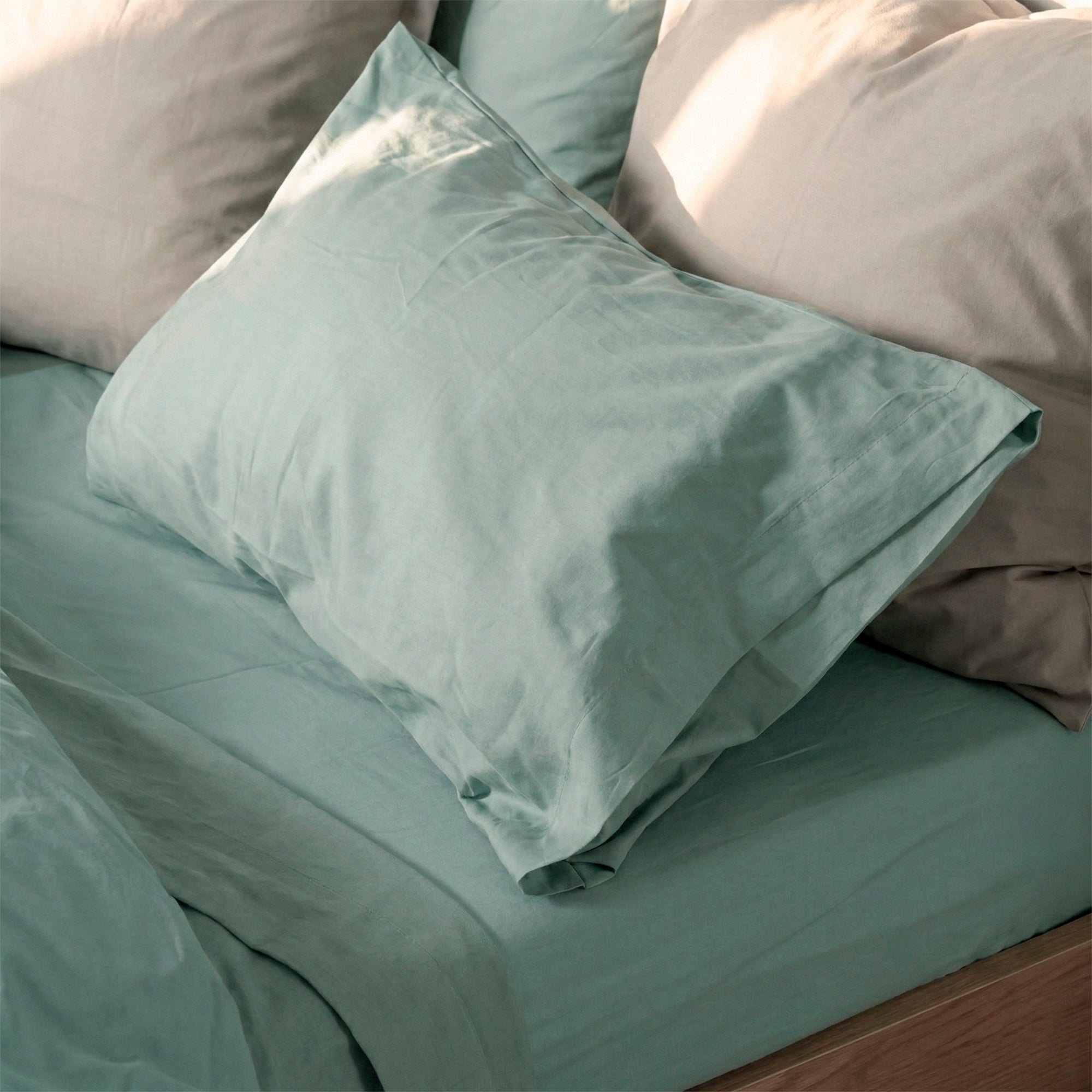 Der mintgrüne BASIC-Kissenbezug wird Ihr Schlafzimmer mit seiner erfrischenden Farbe auflockern und Ihrem Raum ein entspanntes, aber dennoch elegantes und anspruchsvolles Ambiente verleihen.