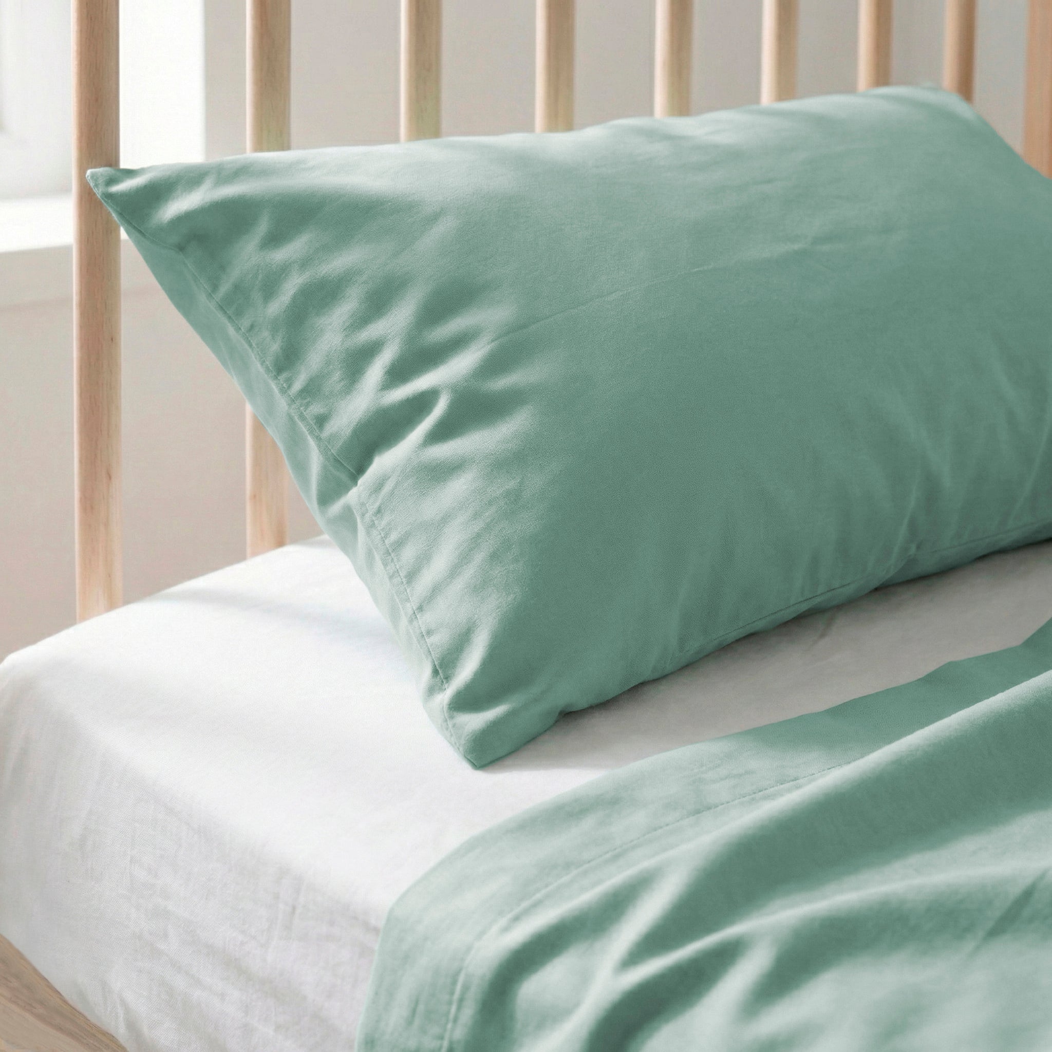 Oberlaken aus mintfarbener 100% Baumwolle mit 150 Fäden.