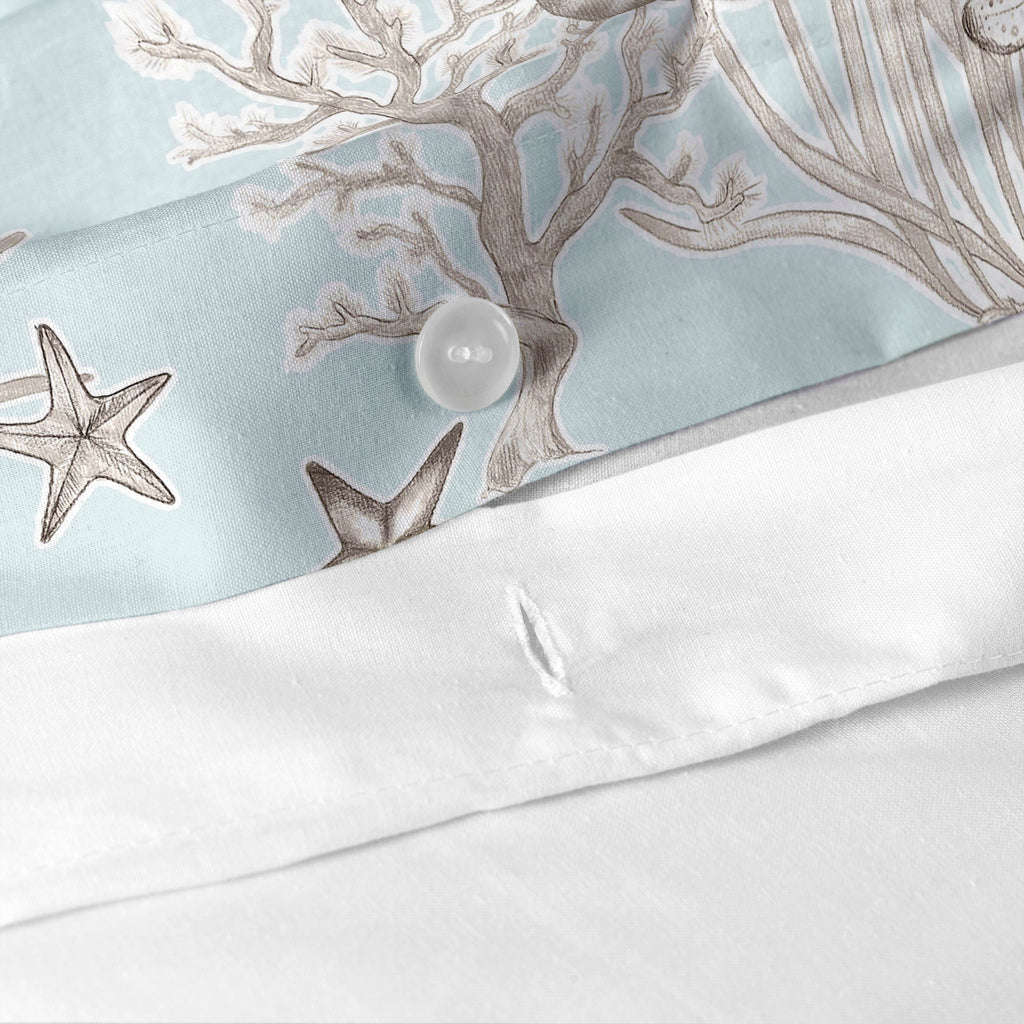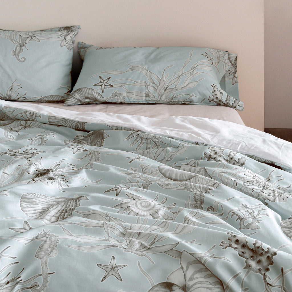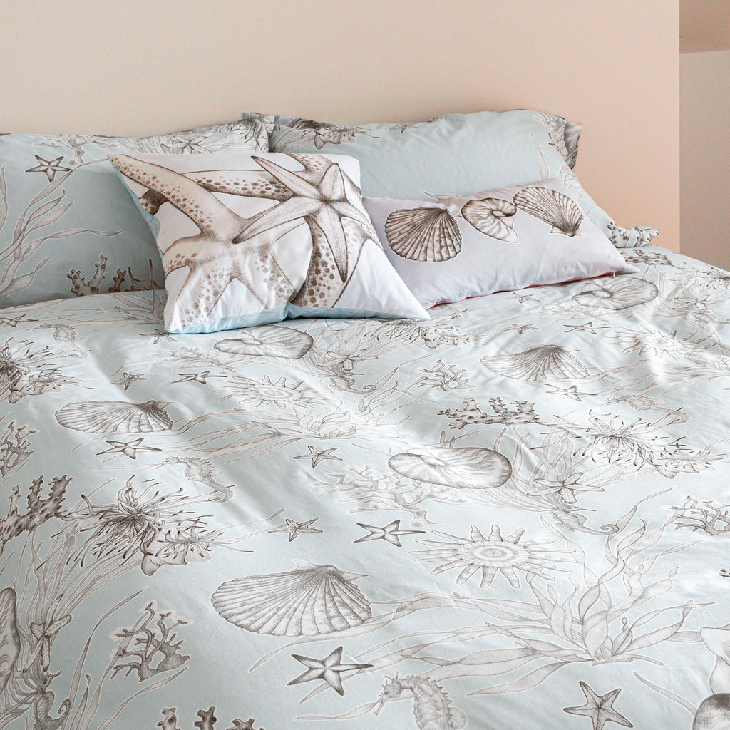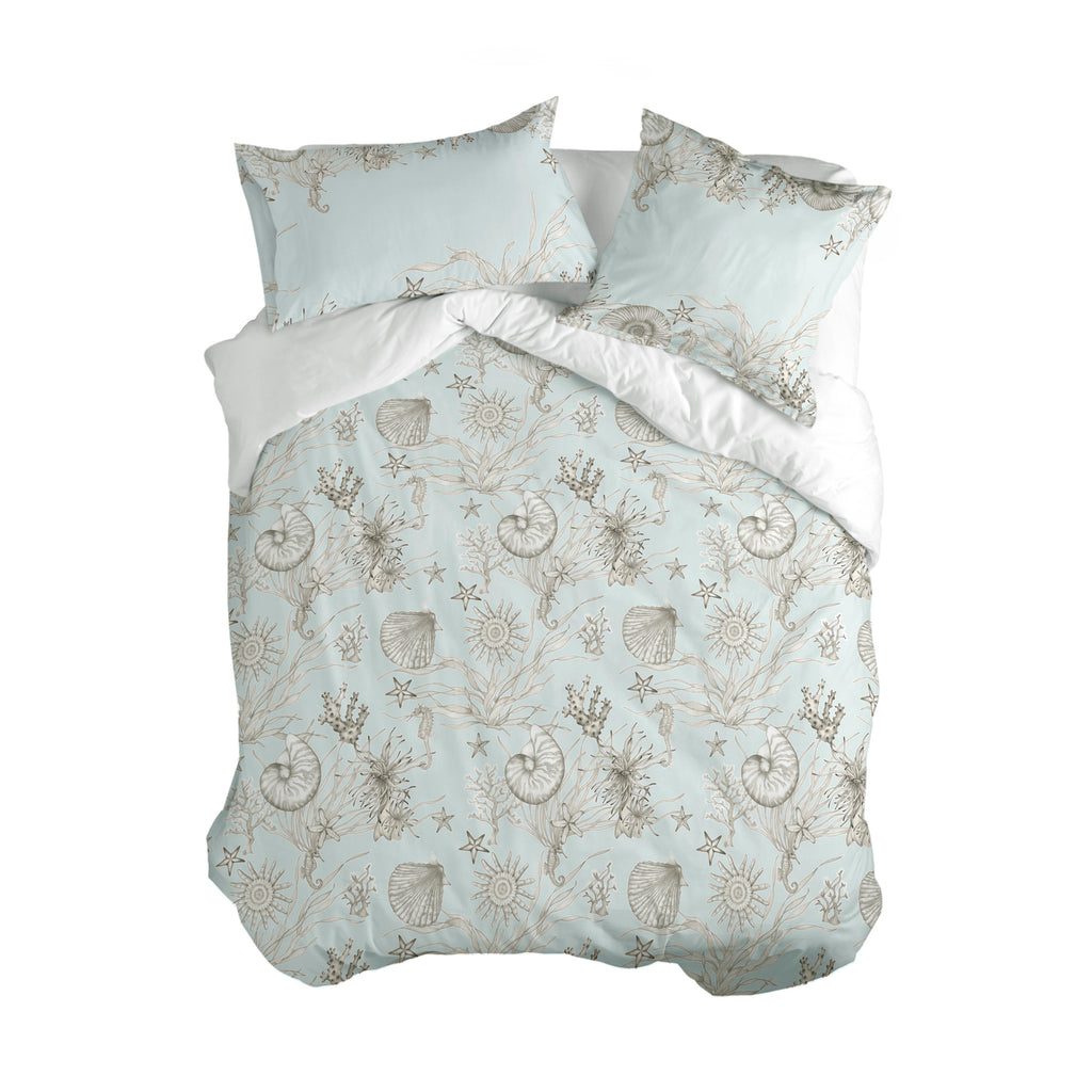 Happyfriday's Coral Reef duvet cover will bring a sense of calm and tranquility to any room with its detailed illustrations of marine life on a pastel blue sea.