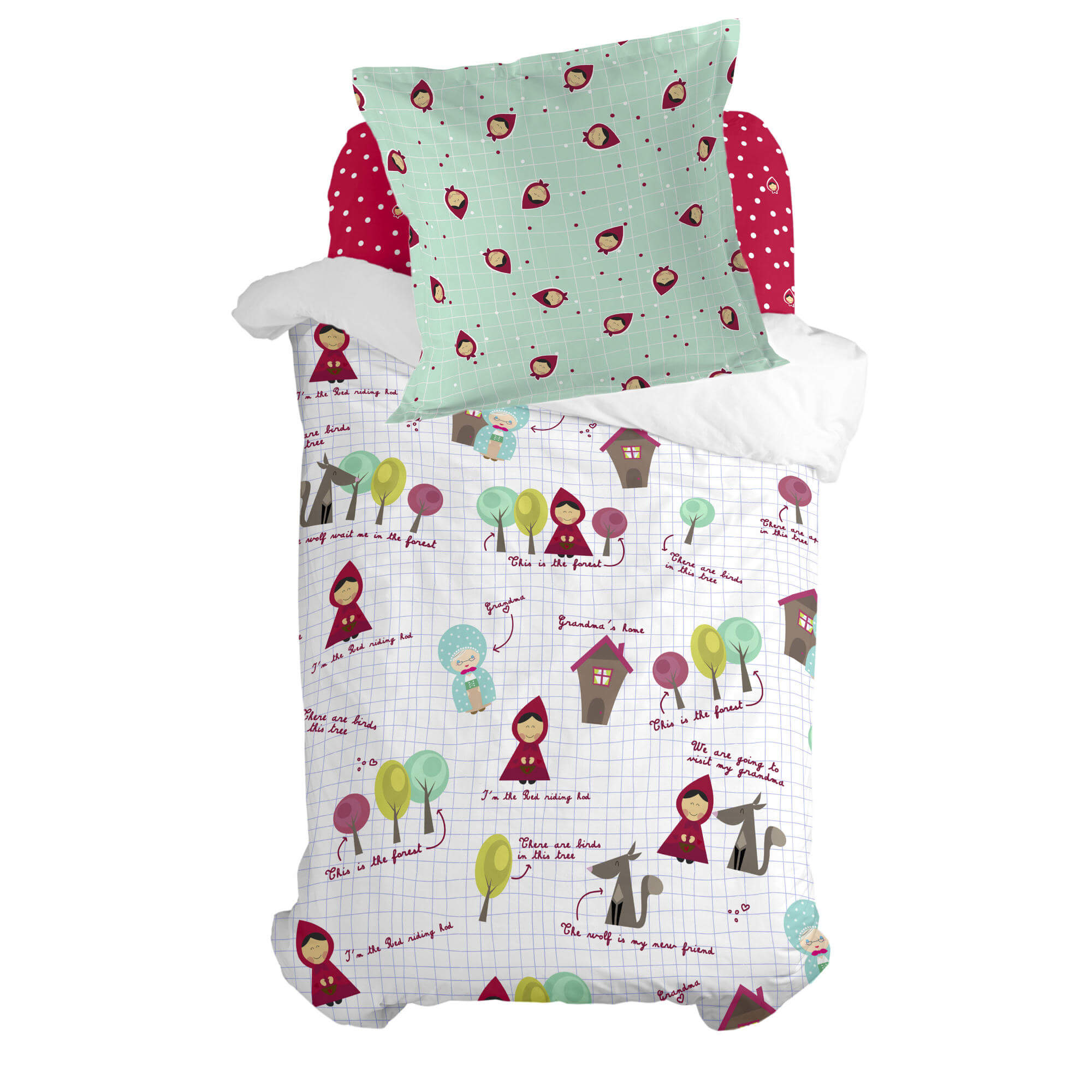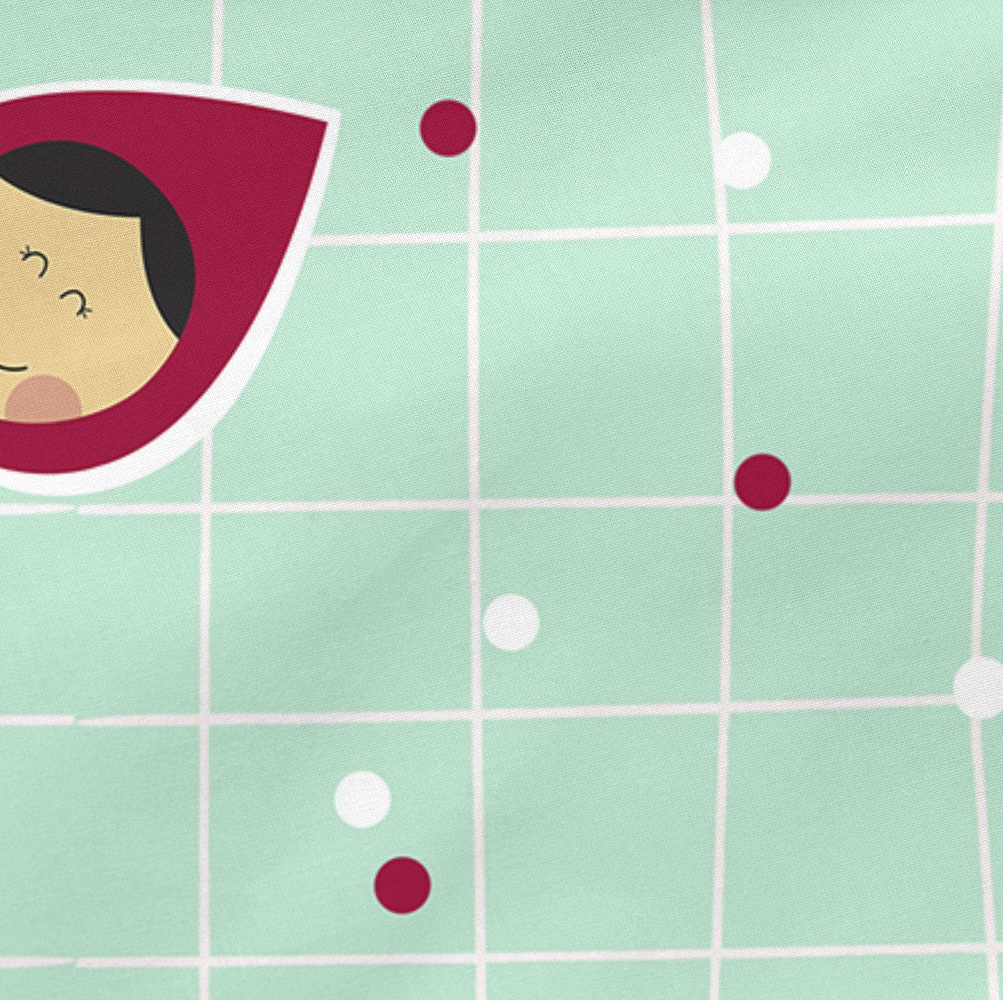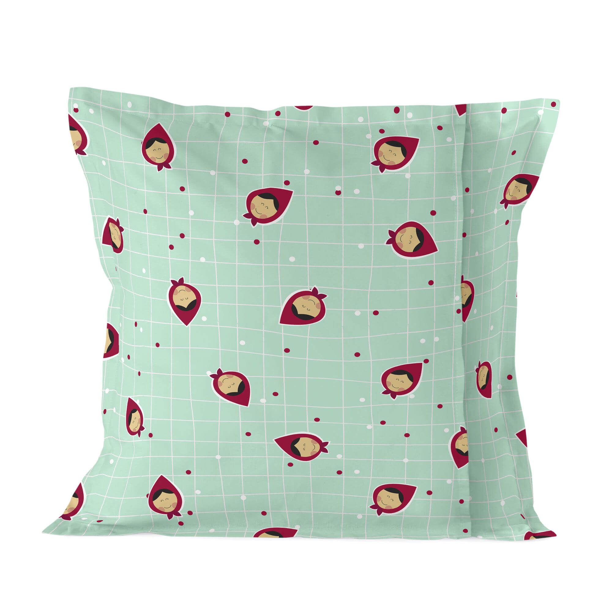 The Grandma Notebook Pillow Cover from the Mr. Fox Collection will help you decorate your child´s headboard in a fun and colourful way with it calming mint green tone and playful red hooded girl illustrations.