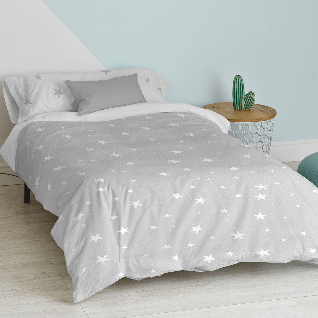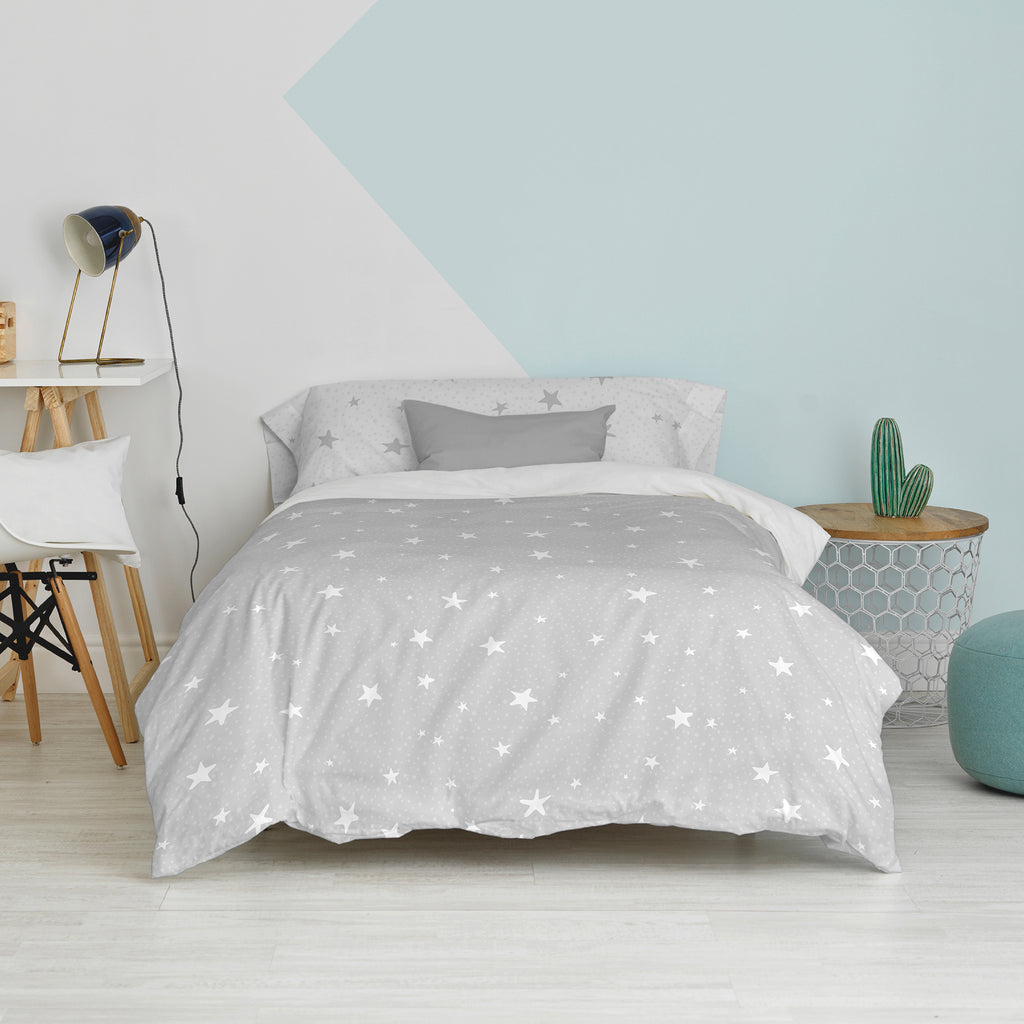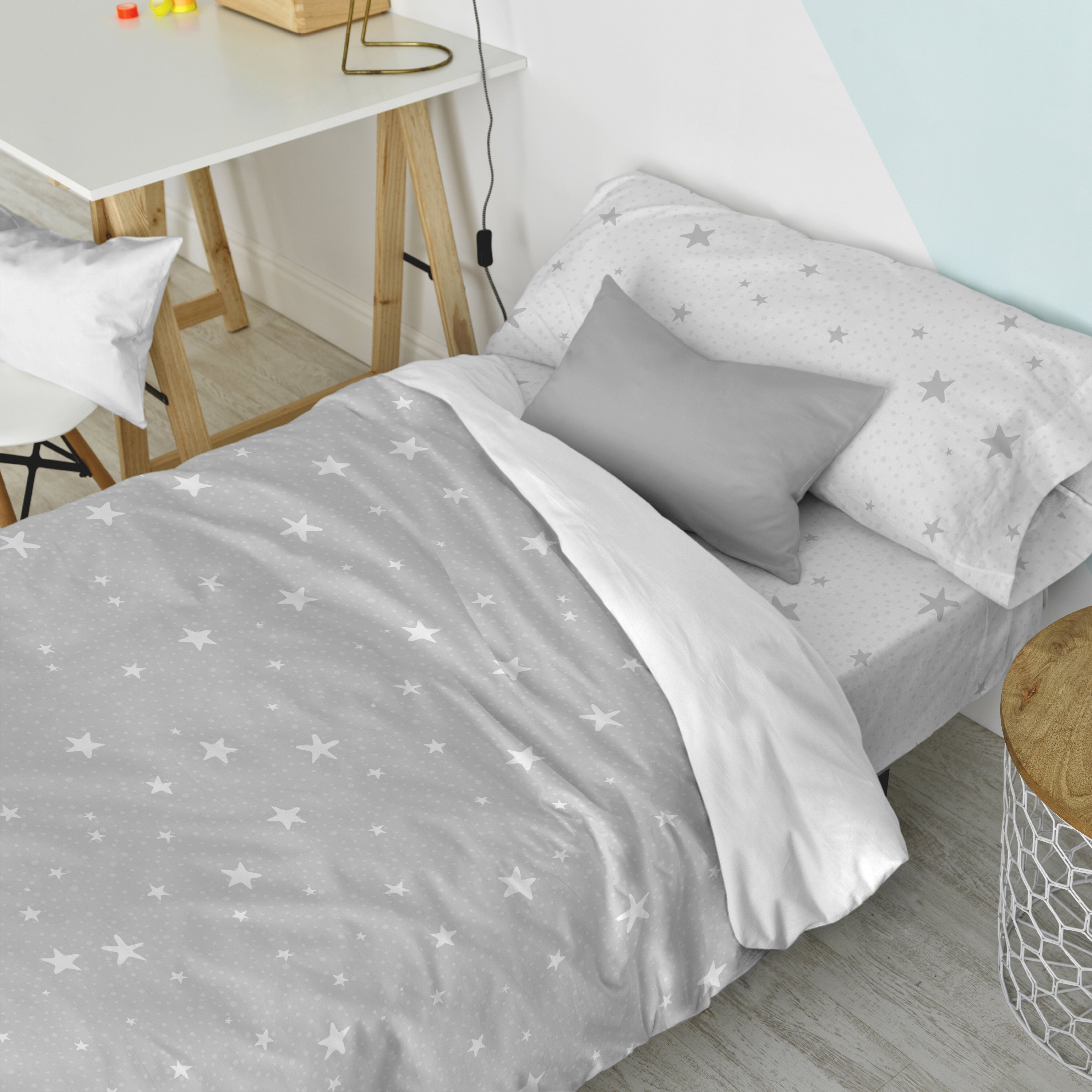 A very sweet and modern design at the same time, inspired by a starry night. This is the LITTLE STAR comforter set in gray, the most tender design of the Basic kids collection.
