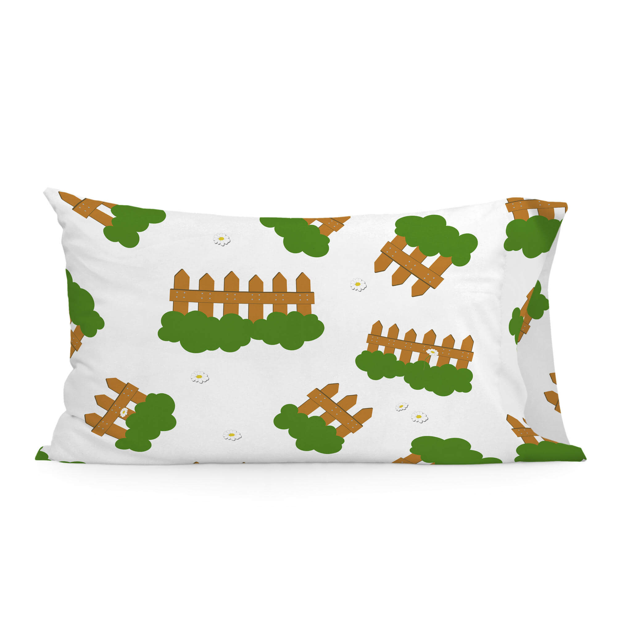 This pillowcase is not lacking in detail, it features a fun print of daisies and wooden fences of the countryside, in bright colors. Ideal for complementing a look with other items of the same design. Made with 150 thread count natural cotton, we guarantee the softness and comfort needed for a restful night's sleep.