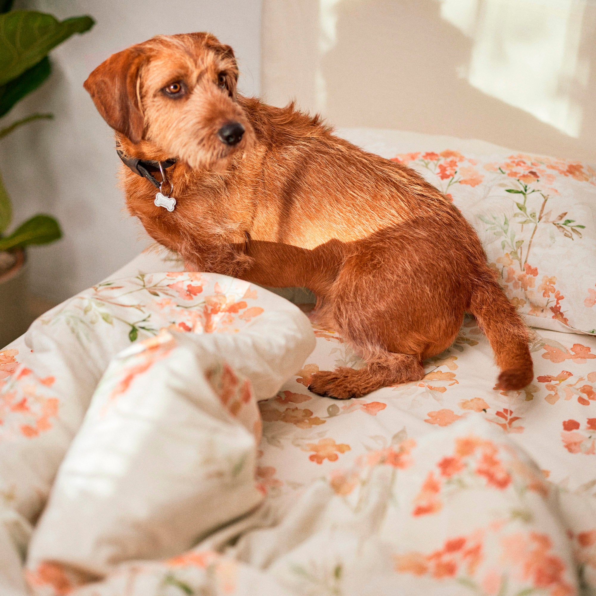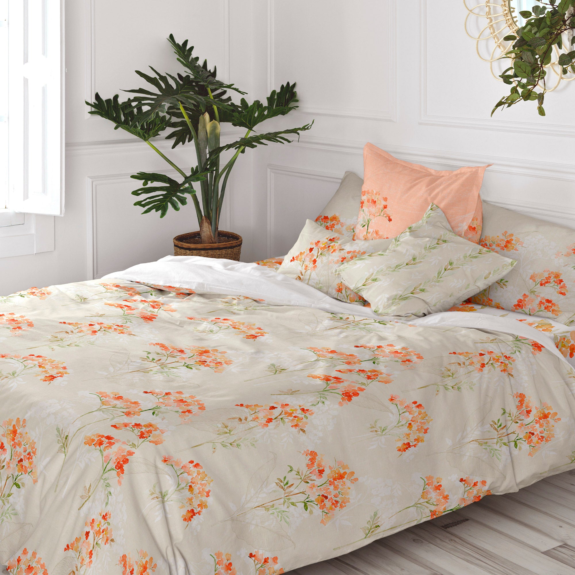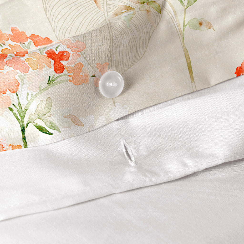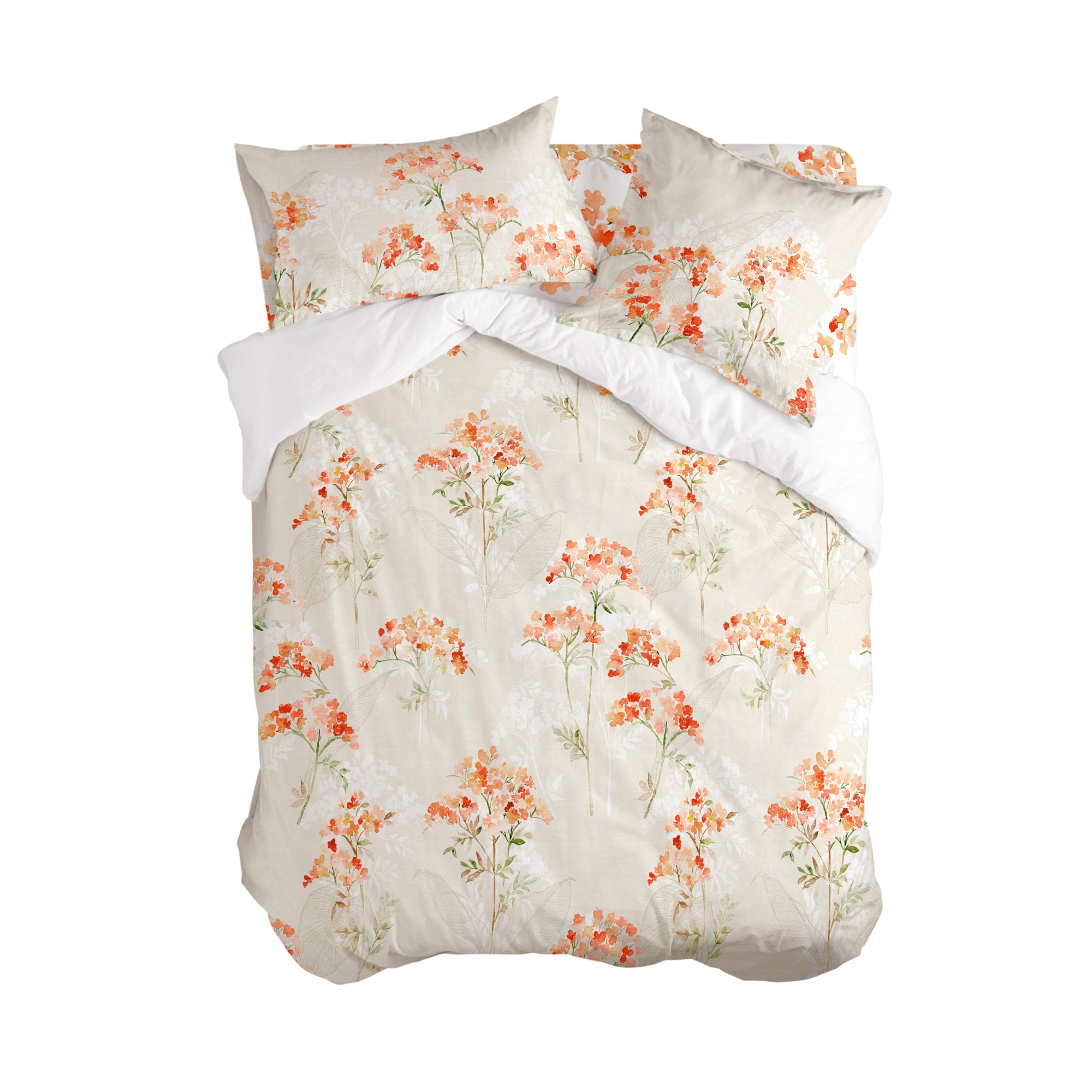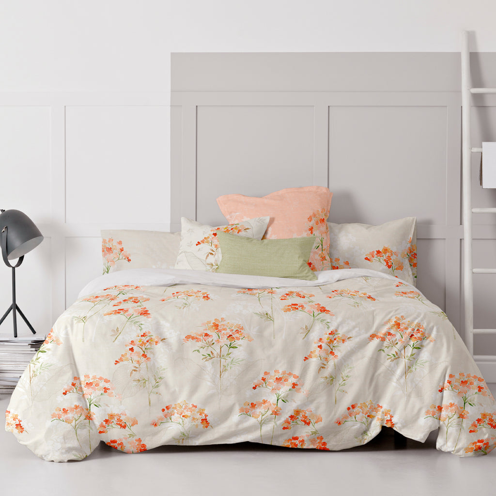 The beautiful and delicate combination of warm and vivid marmalade-colored bush illustrations on a soft neutral background make the Riomaggiore duvet cover from the Happyfriday collection the perfect accessory to create a space in your room that feels balanced yet dynamic.