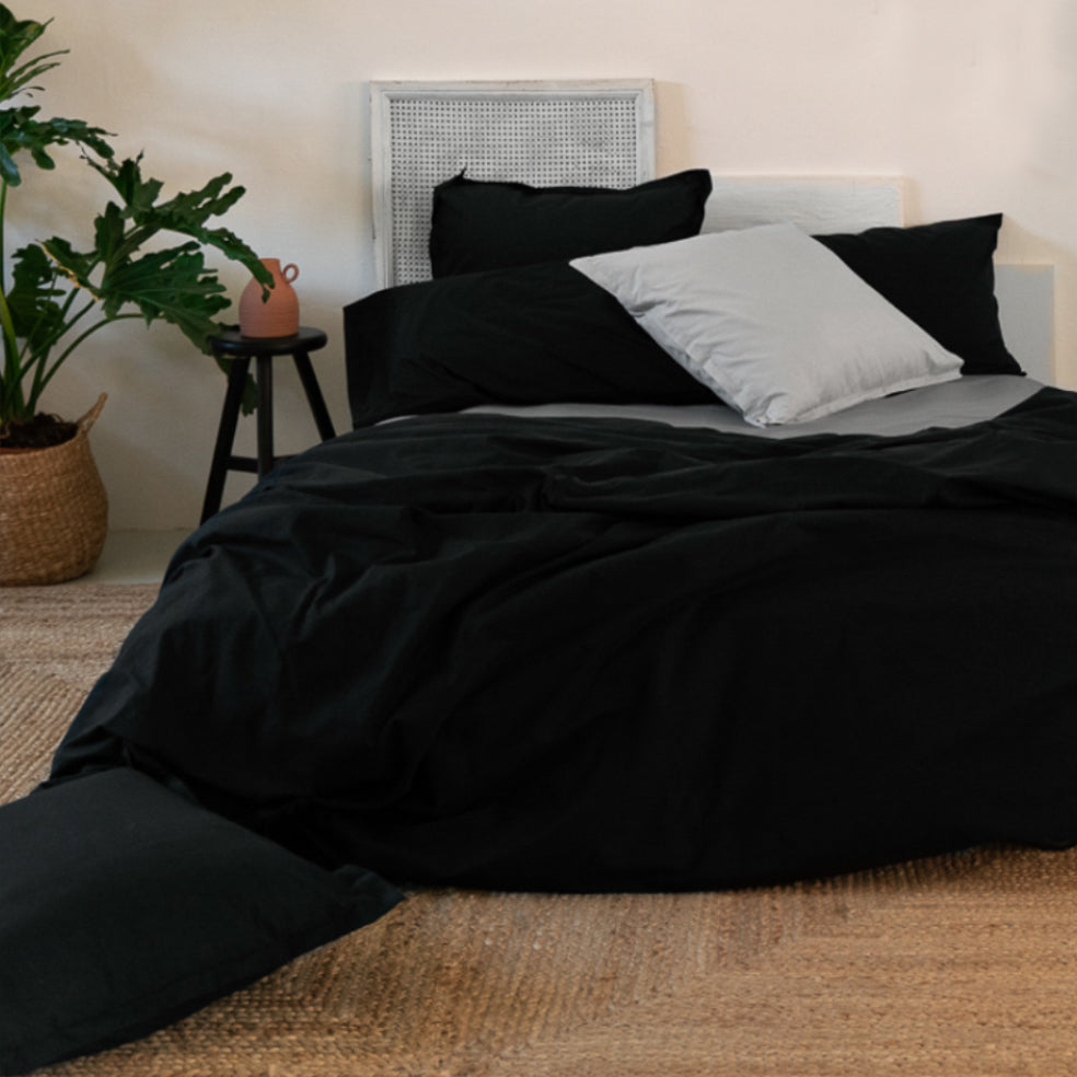 Parce que nous pensons que l'on peut être basique tout en restant élégant, nous vous proposons la housse de couette noire de la collection BASIC. Le produit idéal pour ceux qui souhaitent donner à leur chambre à coucher un aspect sophistiqué et classique.