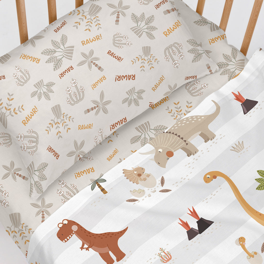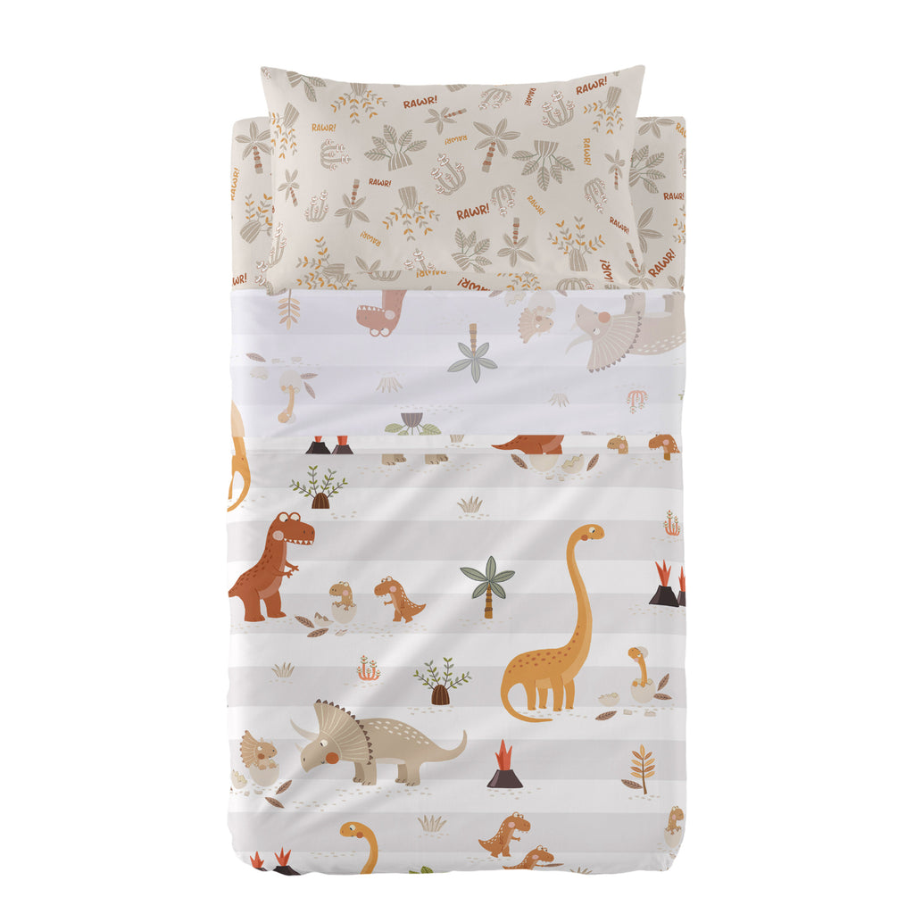 Complétez le monde préhistorique qui se trouve dans la chambre de vos petits avec notre ensemble de draps pour enfants DINO FAMILY.