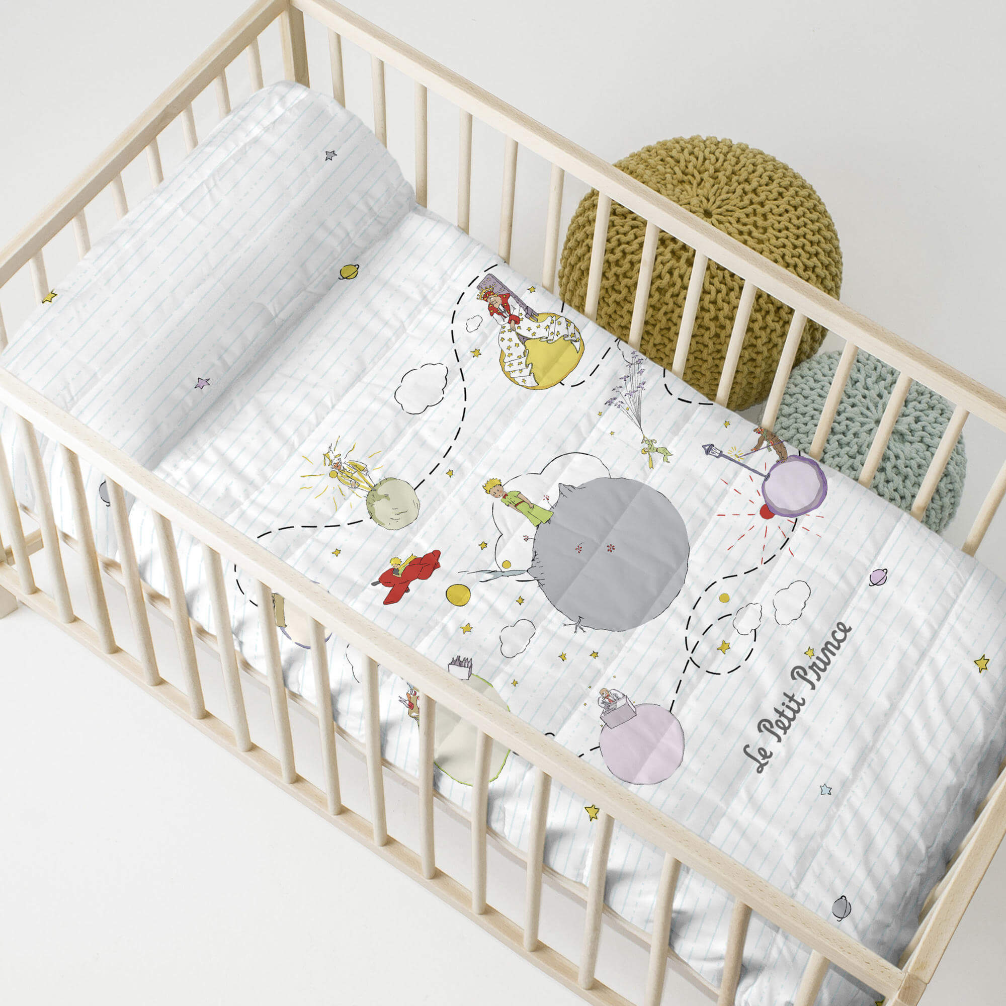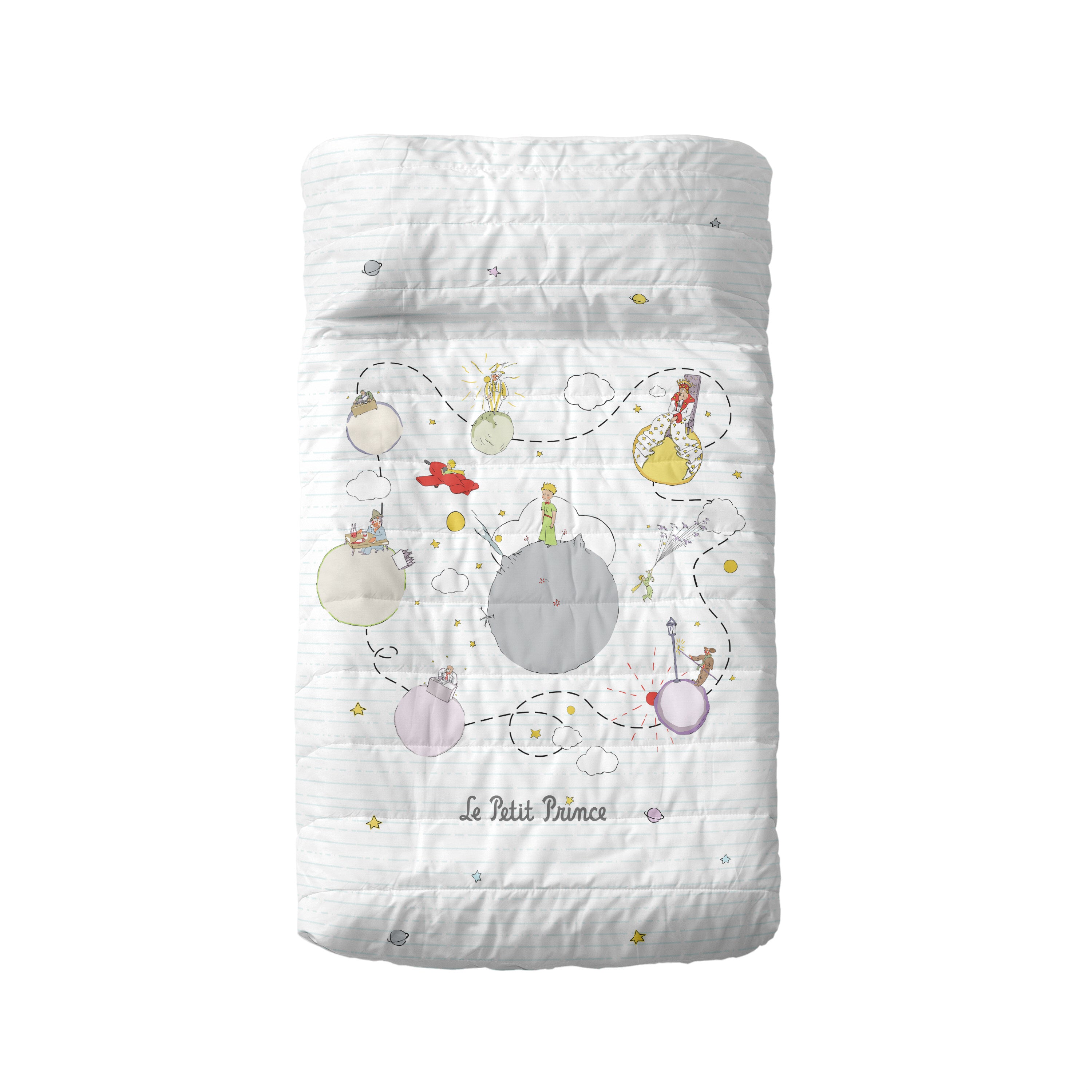 Votre enfant adore les histoires à dormir debout ? Les illustrations détaillées et amusantes du couvre-lit Voyageur de la collection Le petit Prince vous donneront suffisamment d'idées pour commencer et enflammer l'imagination de votre enfant pour qu'il passe une nuit pleine de beaux rêves. Vous pourrez peut-être choisir une planète dont vous parlerez chaque soir ! L'aventure est servie !