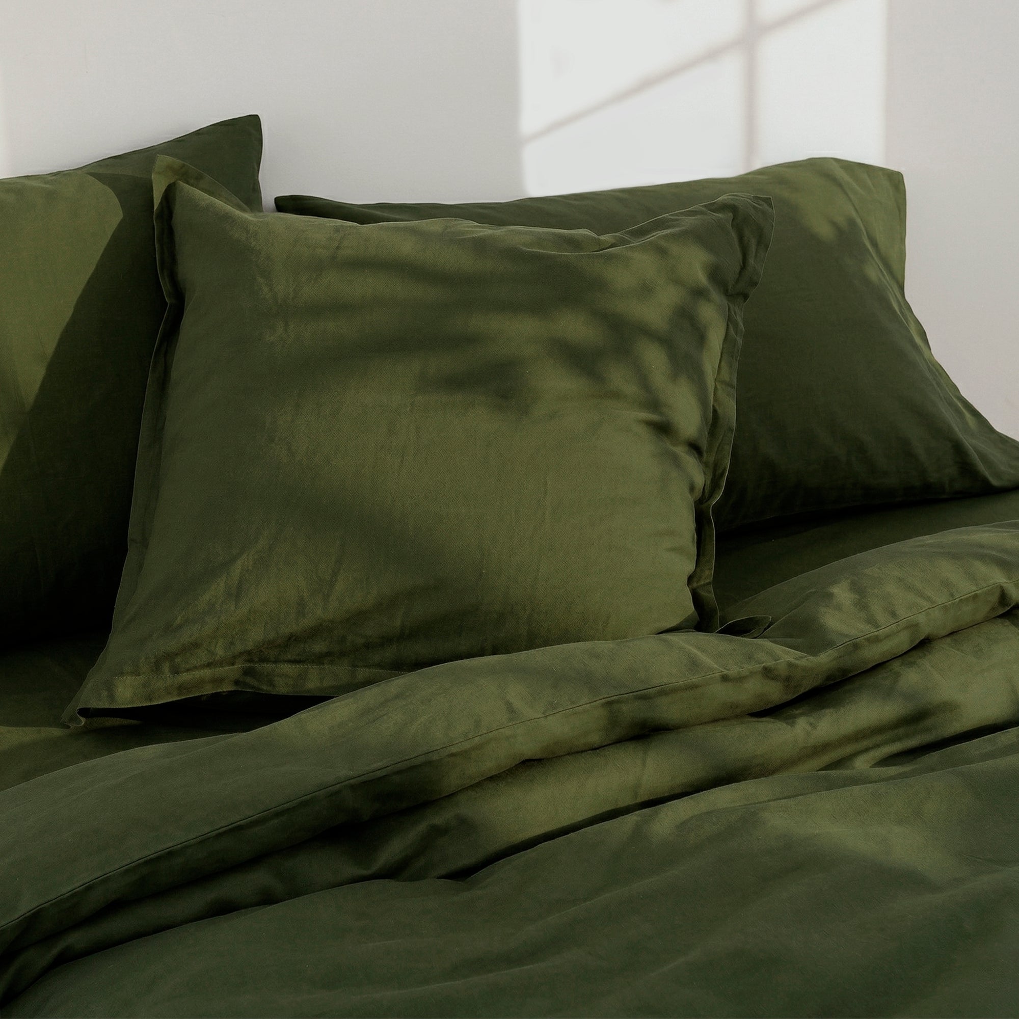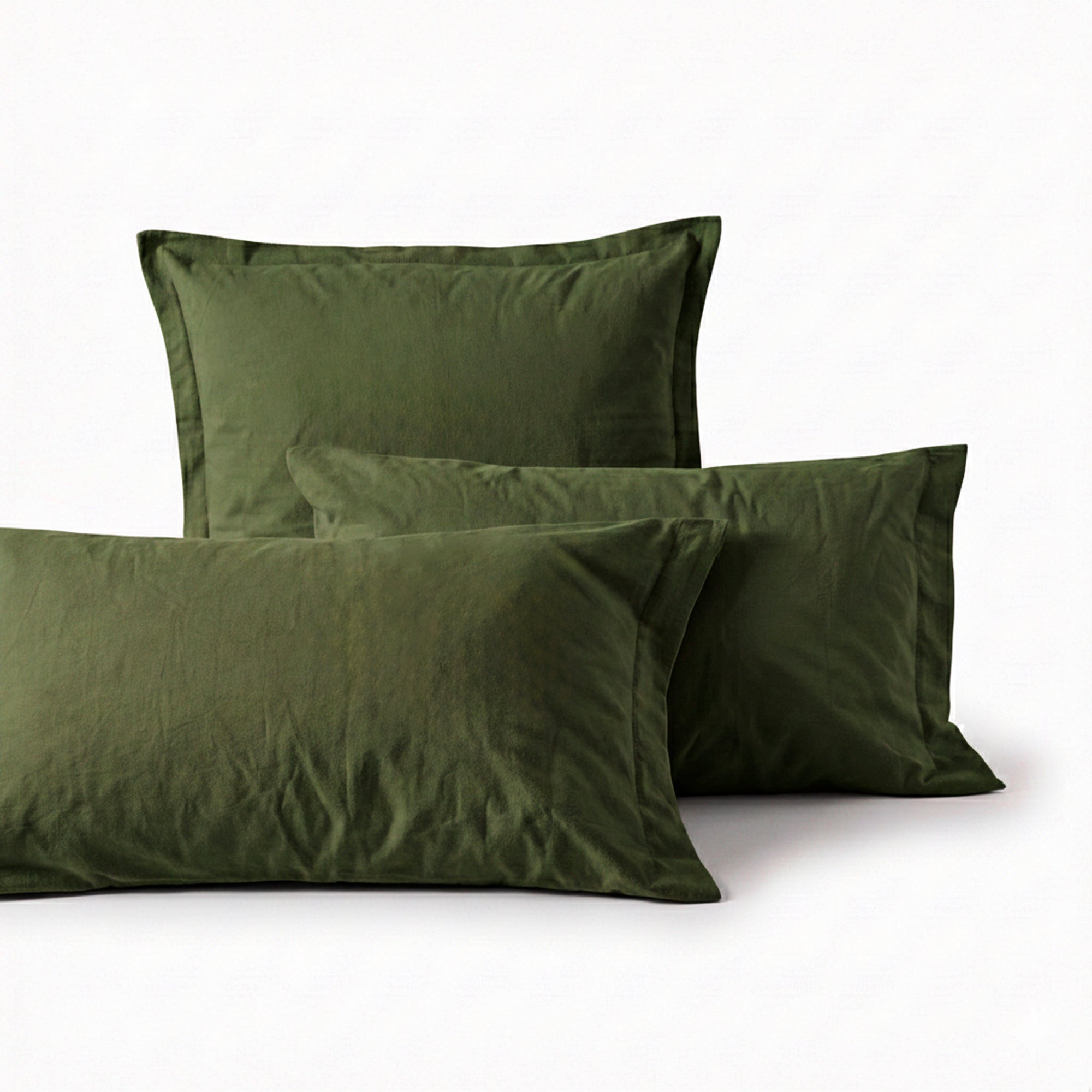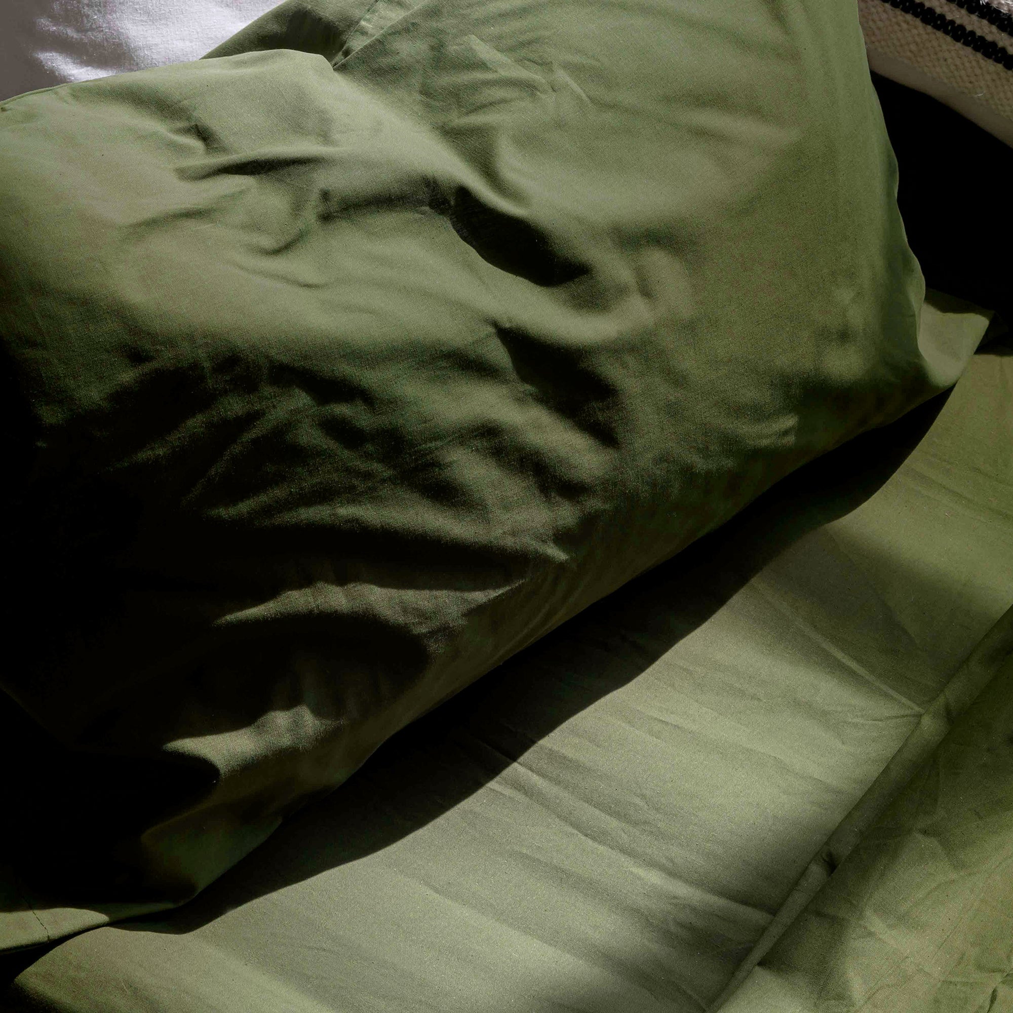 Il copricuscino Olive Green di BASIC creerà un'atmosfera calda e tranquilla sul vostro letto grazie all'uso di un colore neutro e desaturato - ispirato alla natura e portato da Happyfriday!