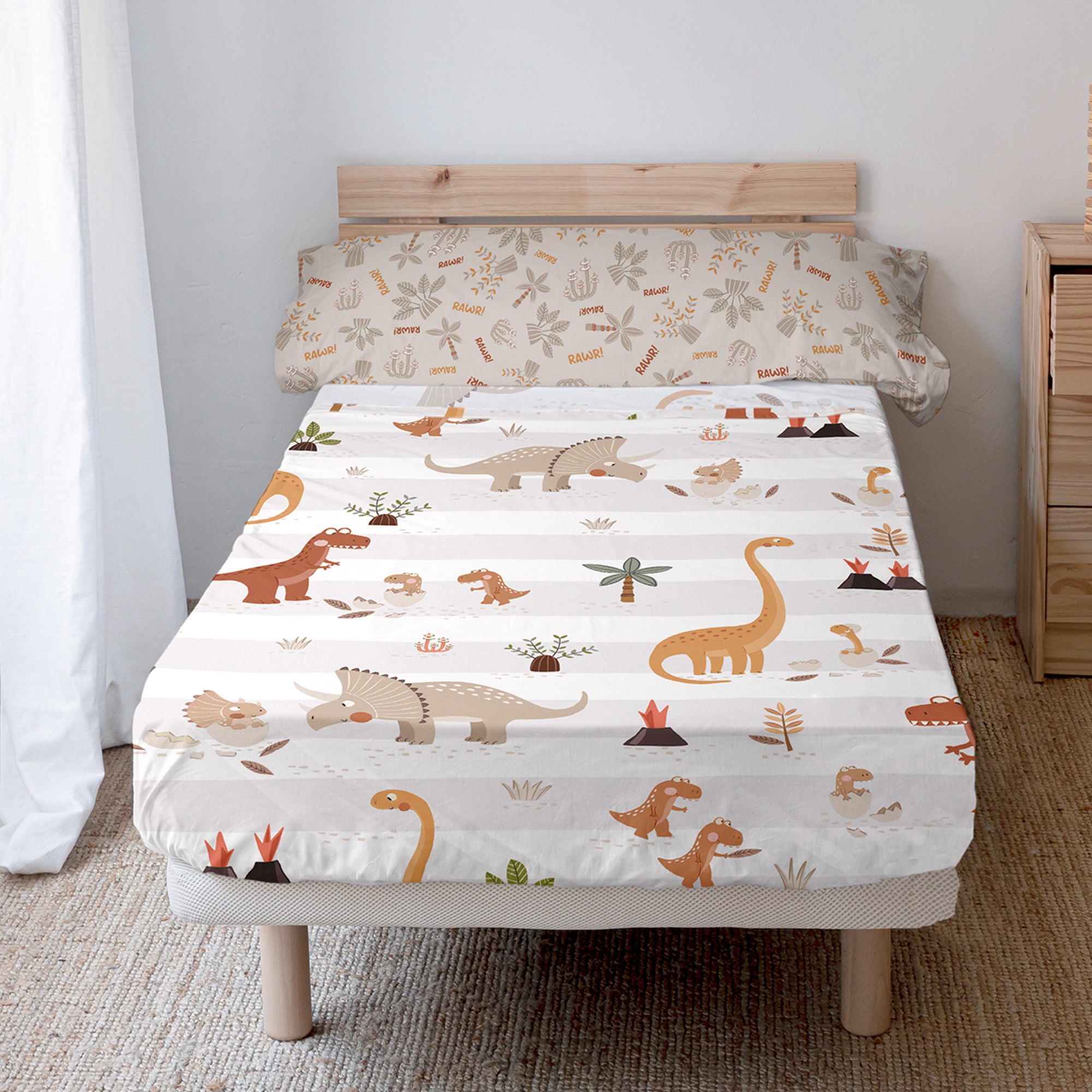 Con il set di lenzuola per bambini DINO FAMILY, la camera dei vostri piccoli si trasformerà in un mondo preistorico.