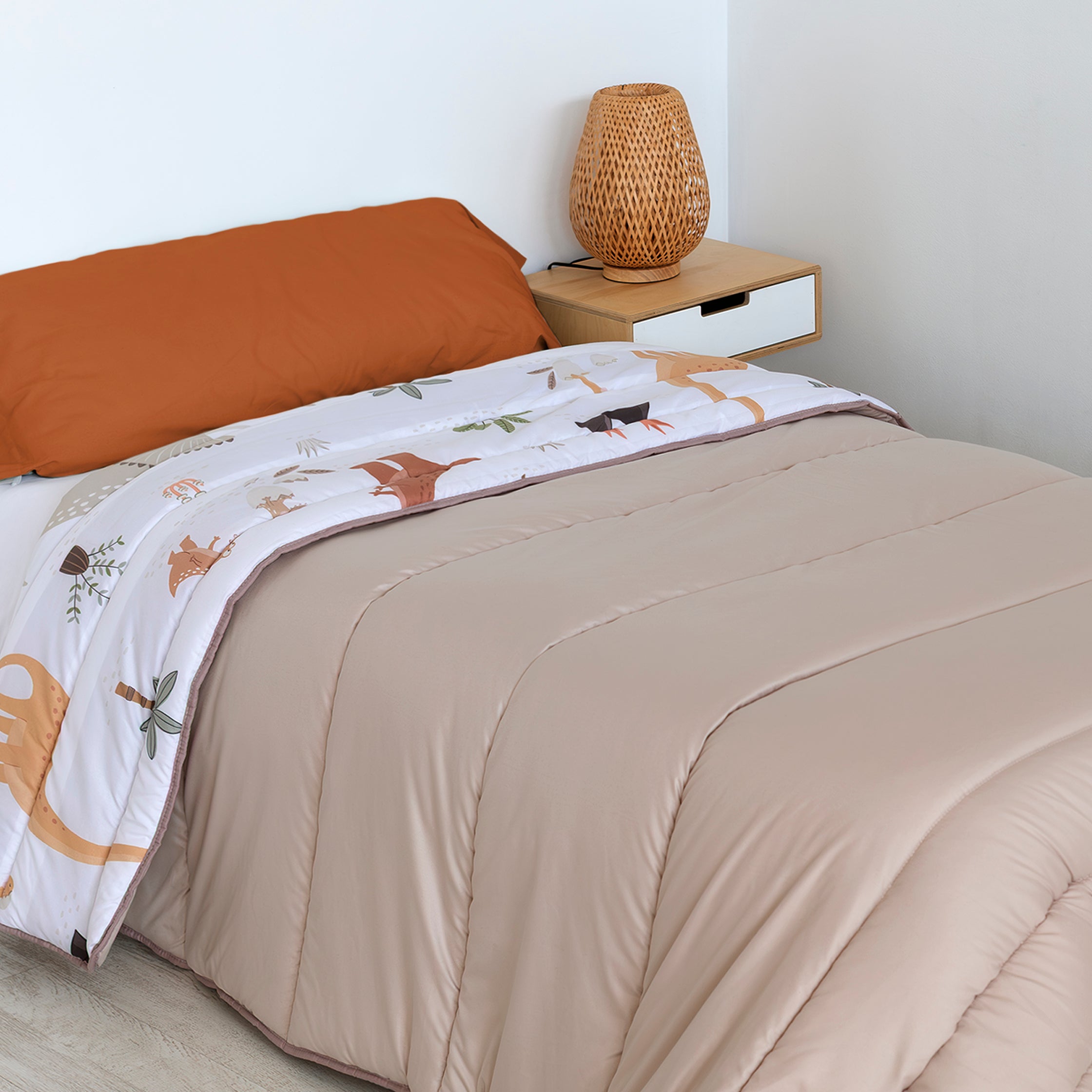 Además, su diseño es reversible: combina un anverso con estampado digital exclusivo y un reverso liso a tono, para que puedas renovar el estilo de tu cama siempre que te apetezca.