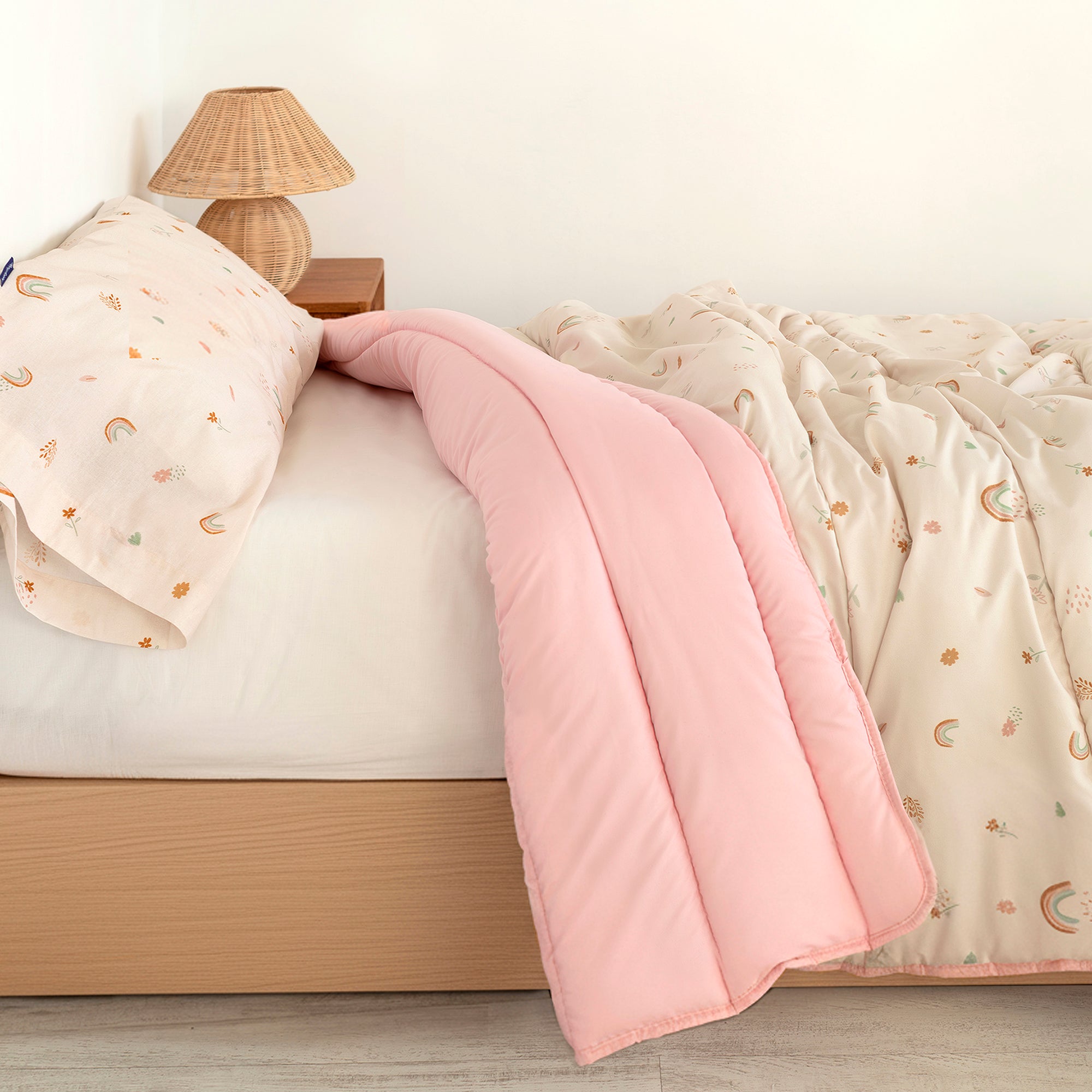 Además, su diseño es reversible: combina un anverso con estampado digital exclusivo y un reverso liso a tono, para que puedas renovar el estilo de tu cama siempre que te apetezca.